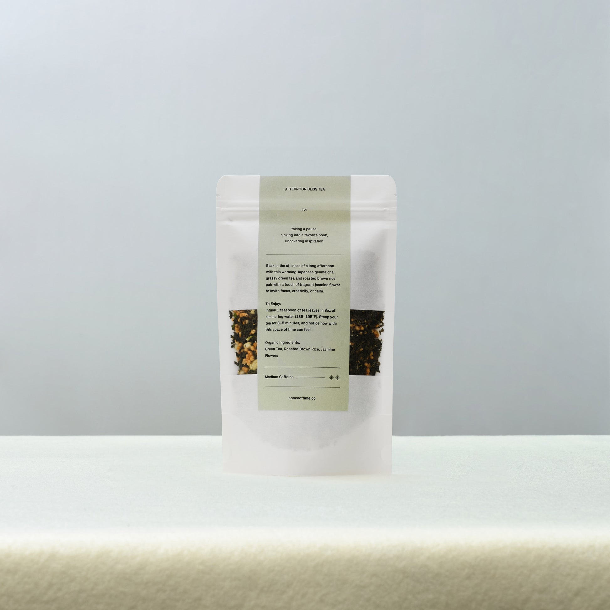 Bask in the stillness of a long afternoon with this warming Japanese genmaicha: grassy green tea and roasted brown rice pair with a touch of fragrant jasmine flower to invite focus, creativity, or calm.