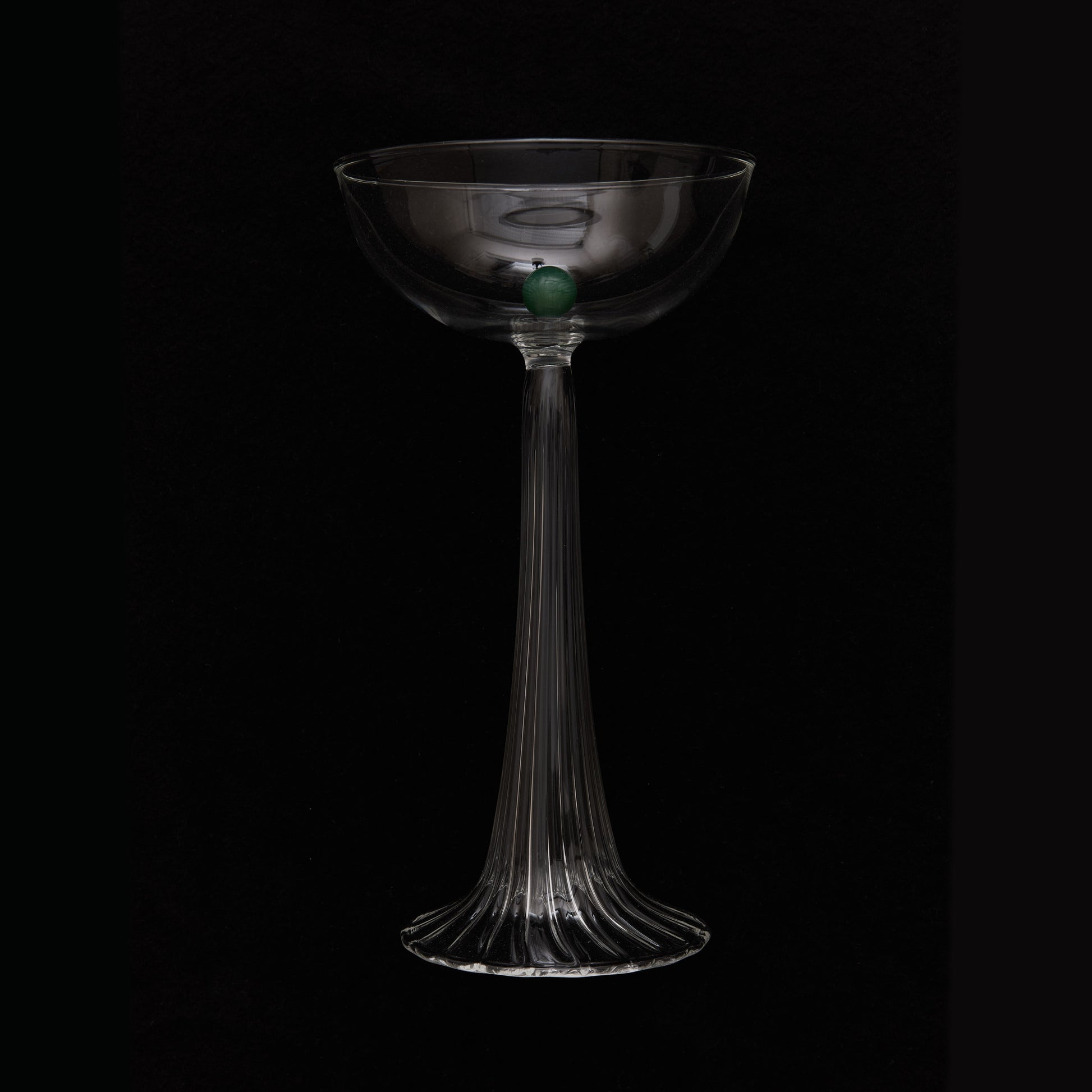 Agustina's sculptural design of the Occasion Glass references that of an enchanting mythological undersea world, with its colored glass sphere as a precious pearl.