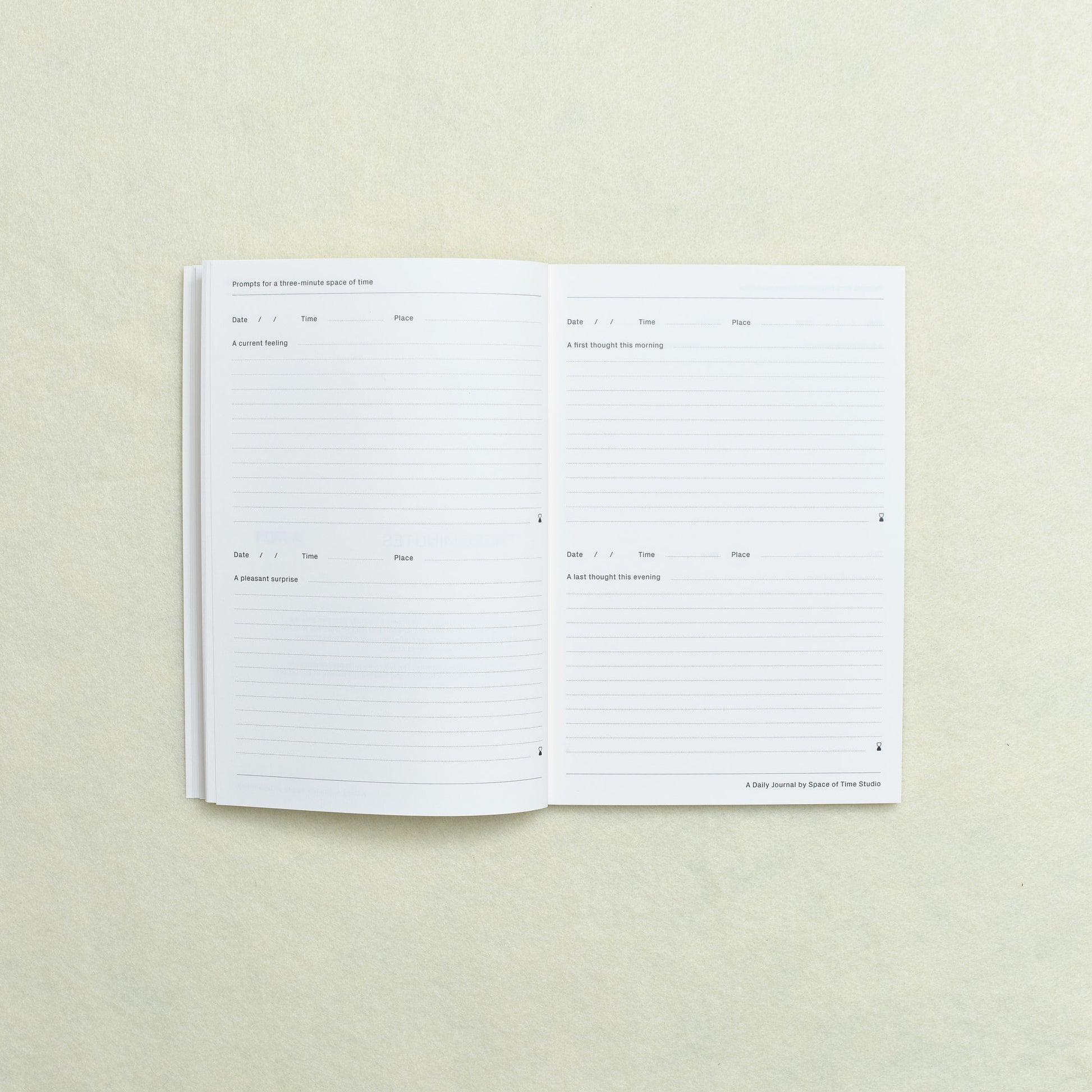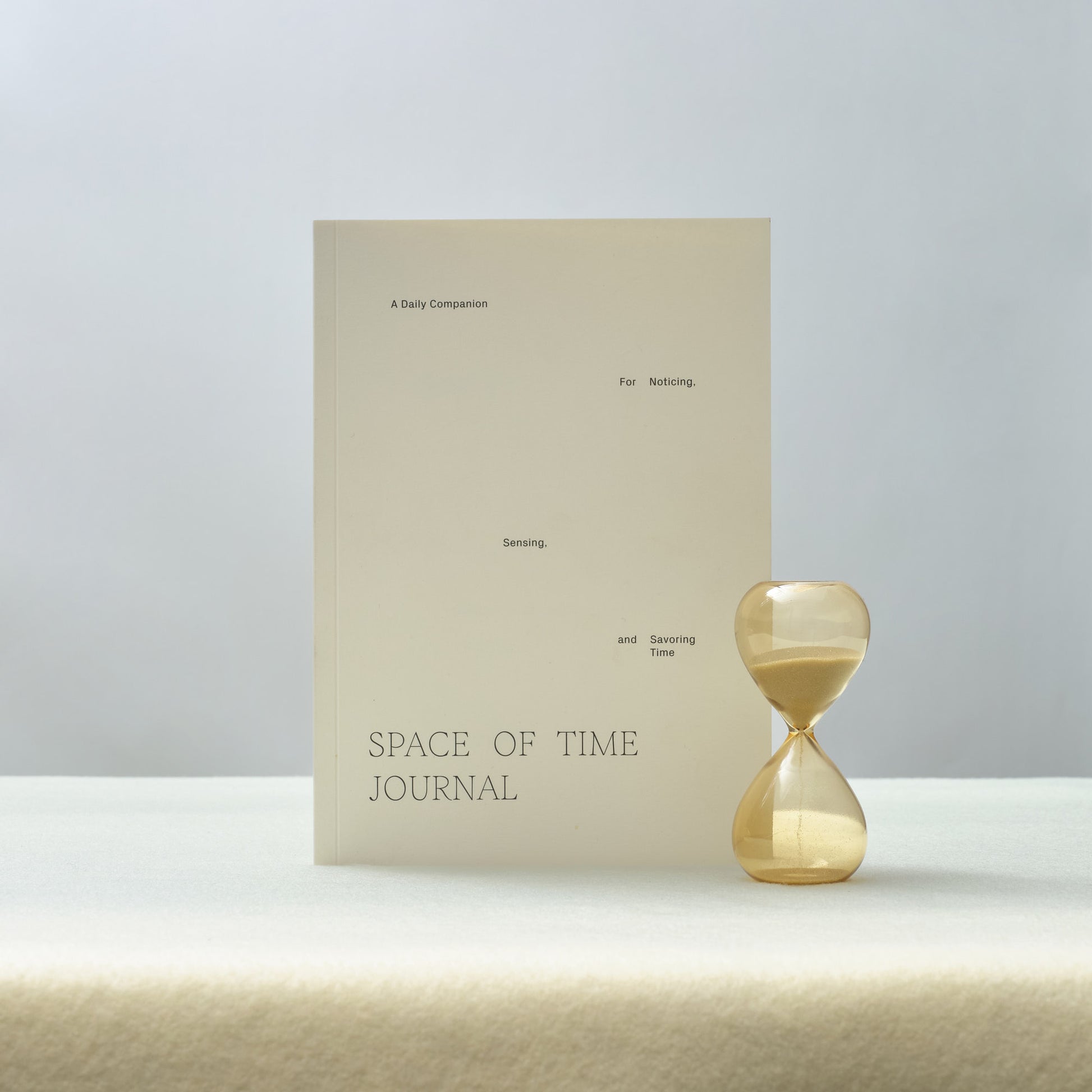 Shaped around the daily routine of savoring the minutes and moments of each day, this set pairs our signature journal and hourglass for an anytime reflection routine. With guided, time-based prompts, the journal and timer are designed to use together based on the space of time you have—just turn over to add another few minutes again and again.