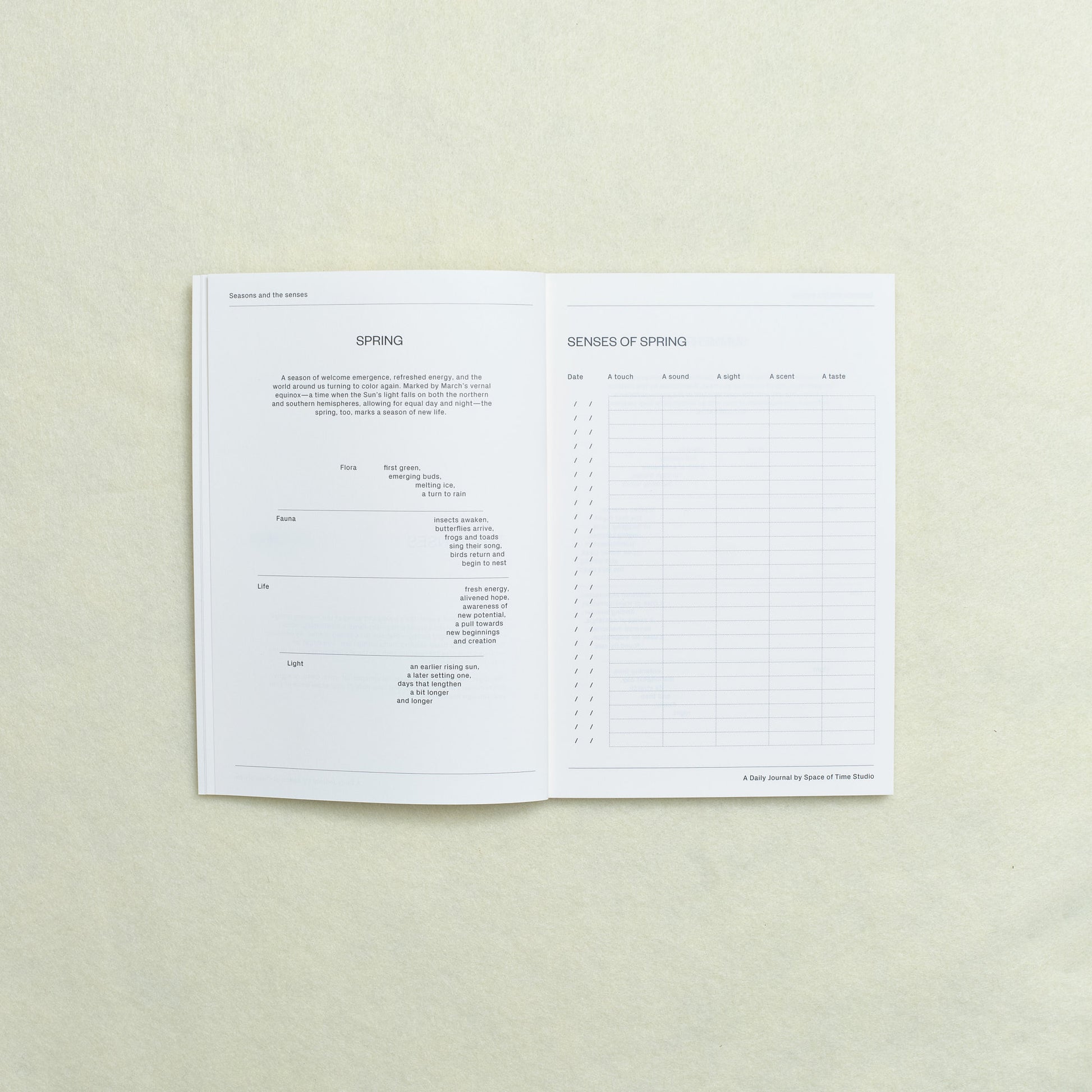 - Daily Reflection Journal: More than just a journal, it is a space to find stillness, tap into the seasons and the senses, and rethink the way you experience time in everyday life. Filled with time-guided prompts for observation and reflection, the journal has been designed as an everyday companion for the moment you’re in—or the moment you’re looking for—wherever you go.
