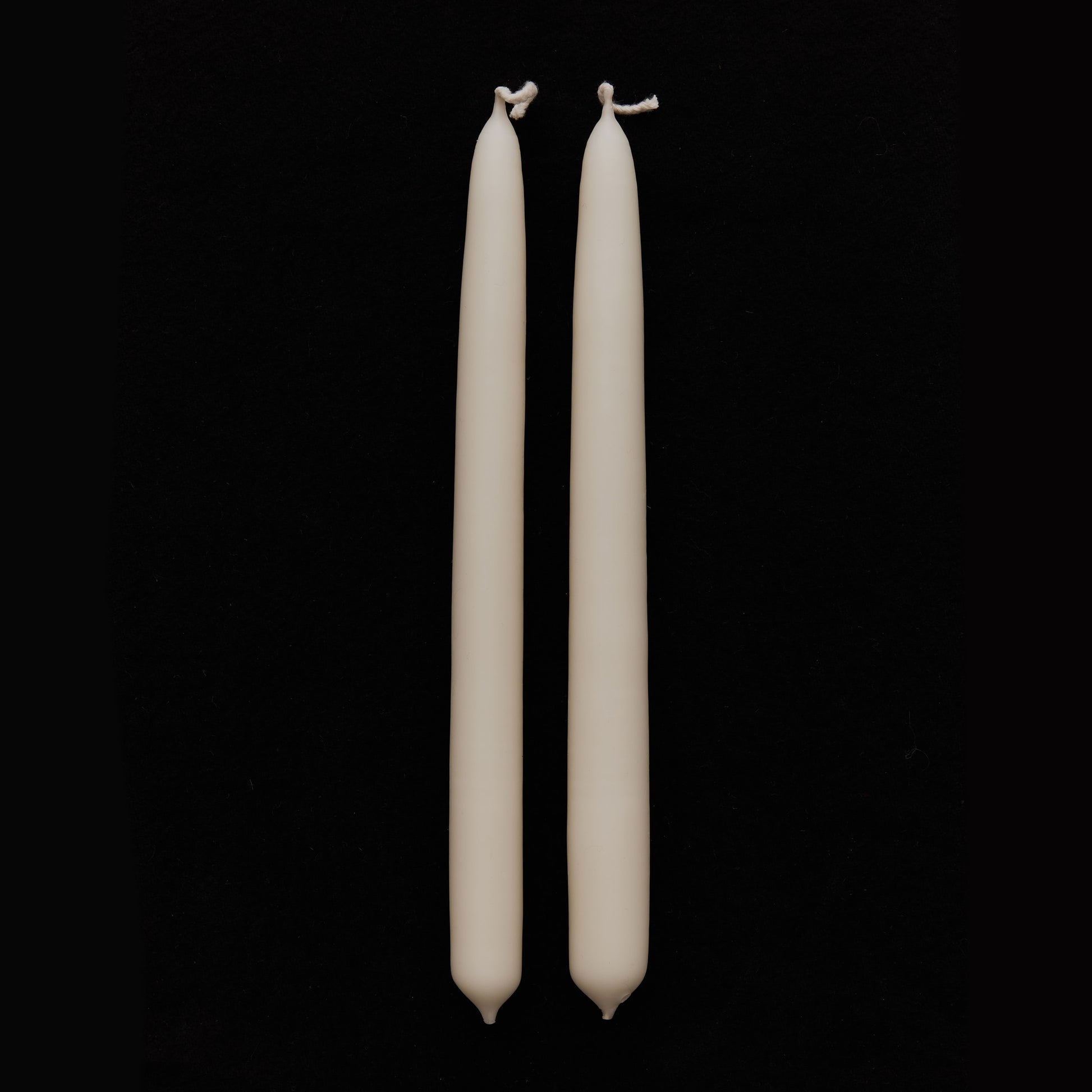 Made of pure beeswax, the candles are available in two natural colors: Cream for a timeless look, or Green Tea for a colorful accent (and a subtle aroma of matcha and honey). Burns for approximately 6–7 hours per candle.